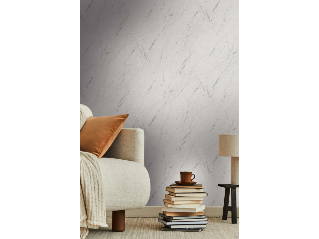 Tapeta 393361 z kolekcji Casual Living to elegancki wzór inspirowany marmurem i strukturą kamienia, utrzymany w modnych odcieniach szarości z subtelnym, lekko metalicznym efektem. Delikatne żyłkowania i struktura nadają ścianie głębi oraz nowoczesnego charakteru, jednocześnie zachowując przytulny klimat wnętrza.