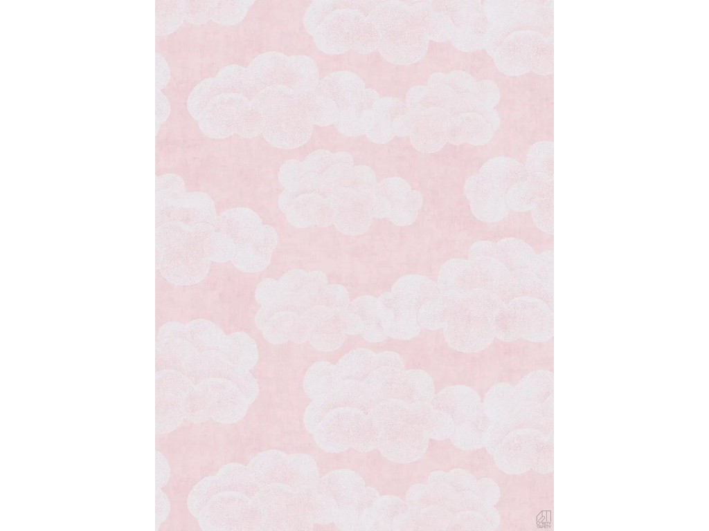 Nowoczesna tapeta do pokoju dziecięcego przedstawiająca białe chmurki na różowym tle wyglądająca bardzo naturalnie.