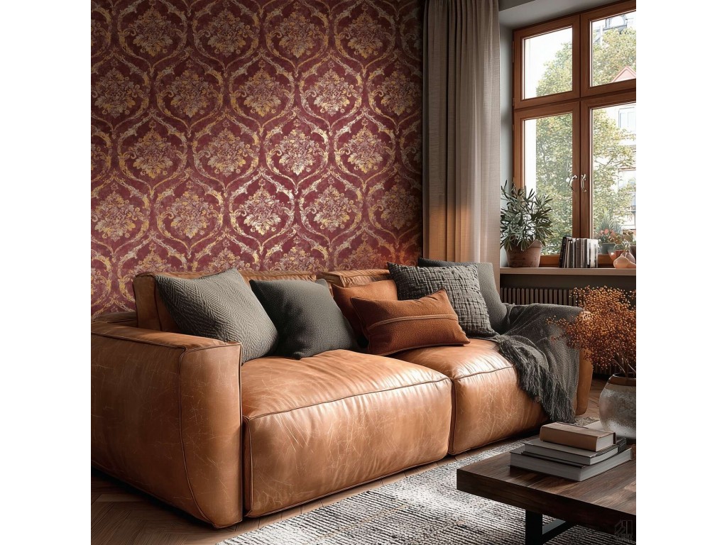 Tapeta ścienna A.S. Creation 79019-3 z kolekcji Vibes & Styles to elegancka propozycja dla osób ceniących klasyczne wzornictwo w nowoczesnym wydaniu. Wyrazisty ornament w odcieniach bordo, złota i beżu tworzy efekt stylowego postarzenia, nadając wnętrzu wyjątkowej głębi i luksusowego charakteru.