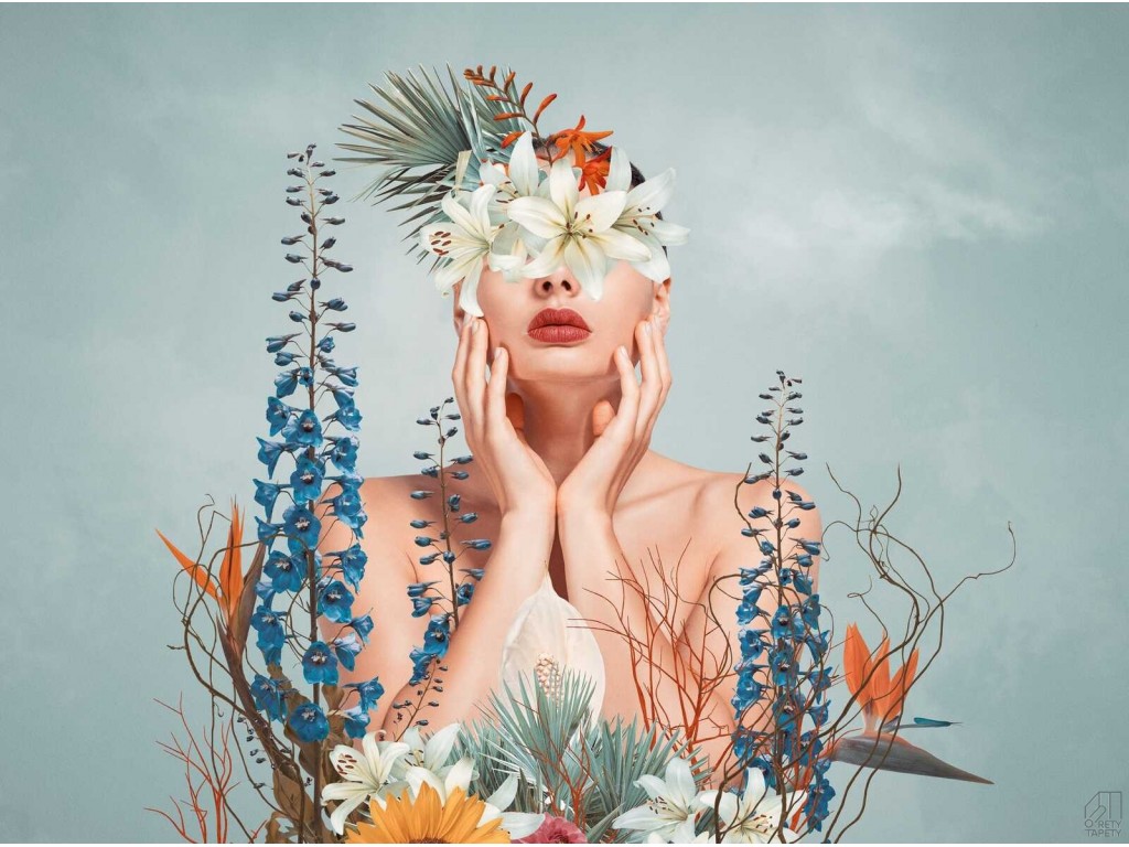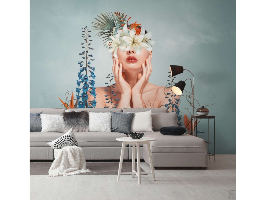Designerska fototapeta z motywem kobiety i kwiatów. Nowoczesny styl, duży format i efekt dekoracyjnej ściany premium.