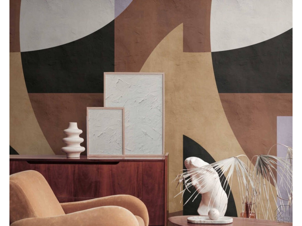 Fototapeta AS Creation 39859-1 z kolekcji The Wall 3 to nowoczesny panel ścienny w stylu geometrycznym, utrzymany w modnych, naturalnych kolorach ziemi. Wzór inspirowany stylem retro i mid-century modern doskonale wpisuje się w aktualne trendy wnętrzarskie.
