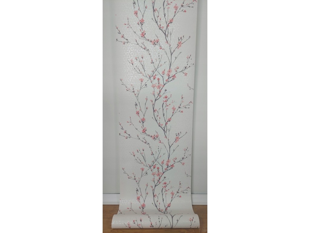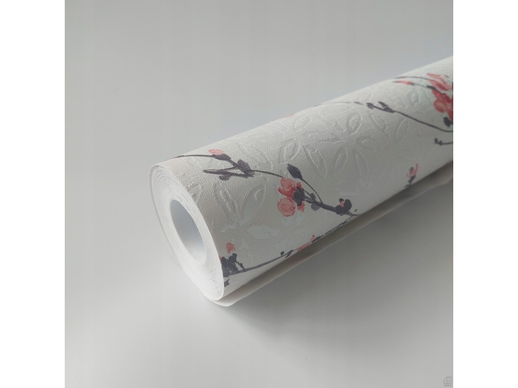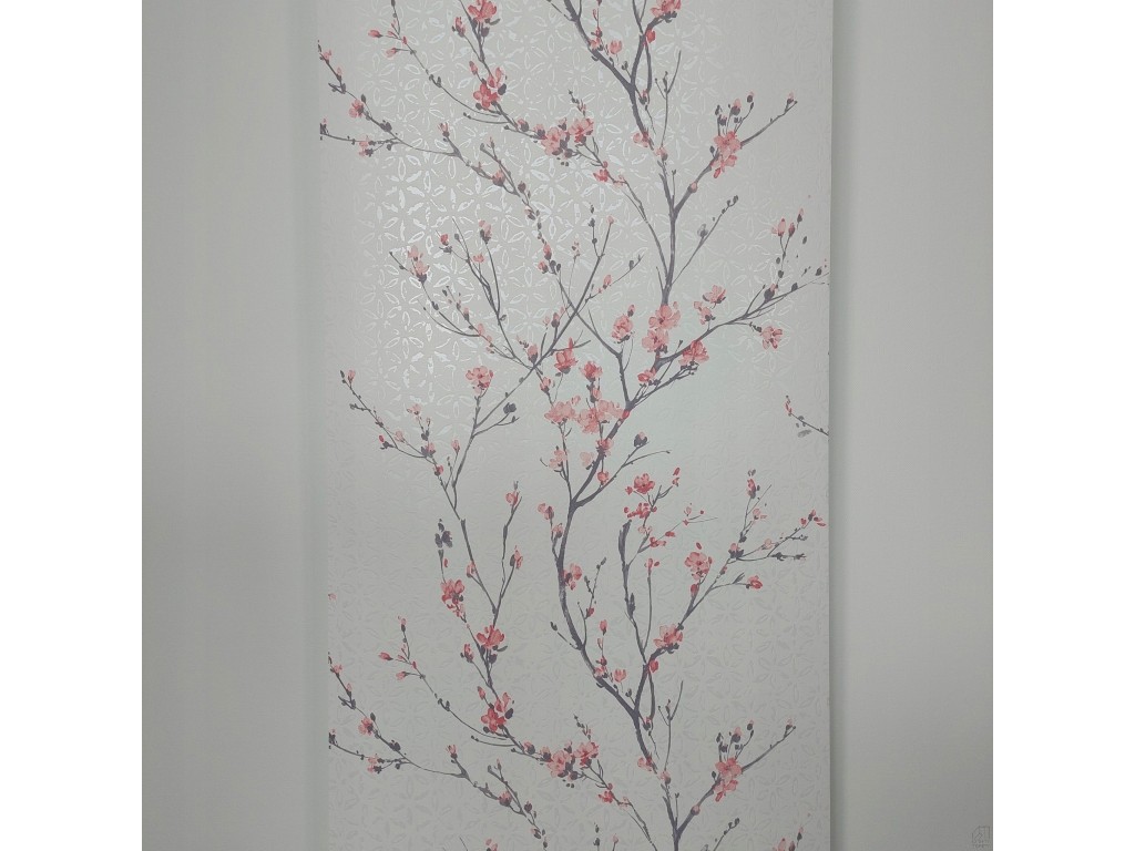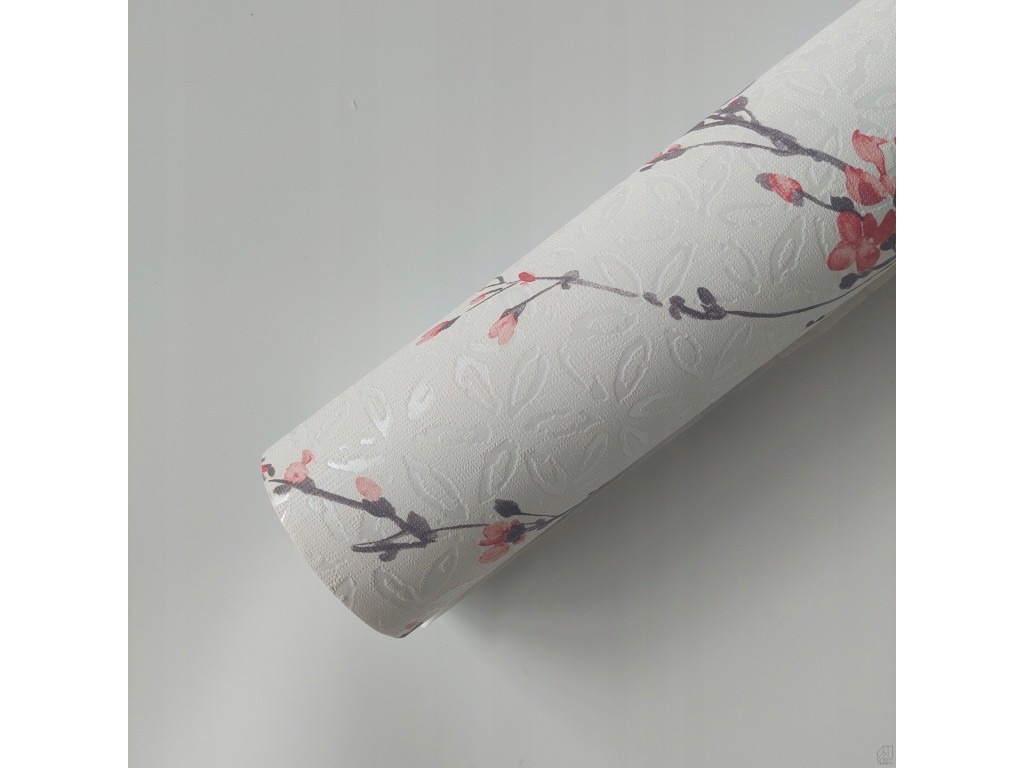 Jasne, rozświetlające tło z delikatną strukturą i połyskiem sprawia, że ściana nabiera głębi, a wnętrze staje się bardziej przestronne i przytulne. Wzór przypominający kwitnącą wiśnię idealnie wpisuje się w modne aranżacje japandi, skandynawskie oraz klasyczne.