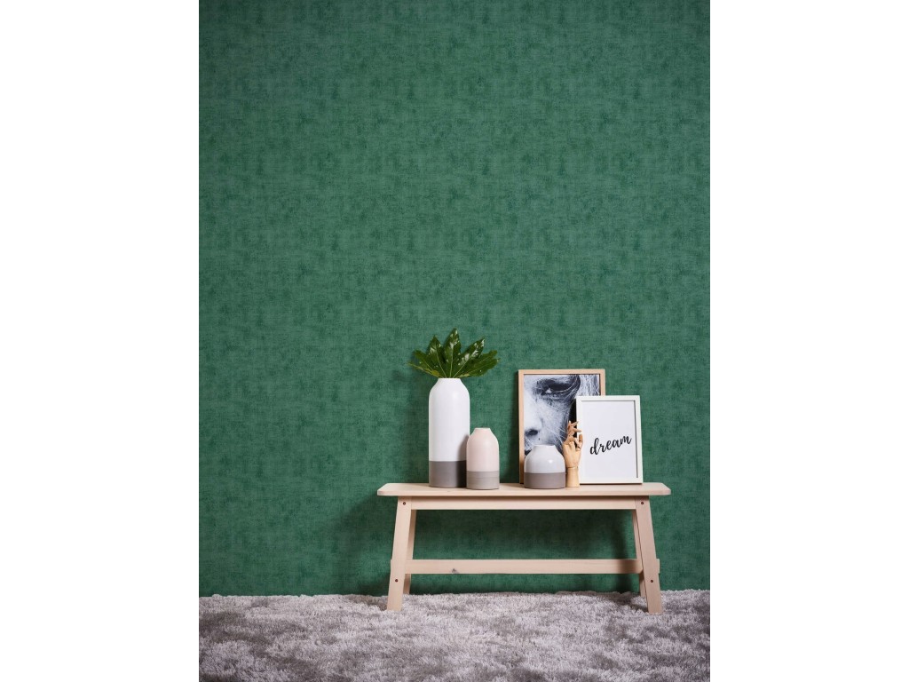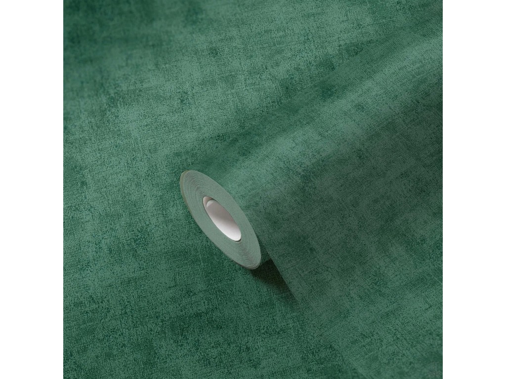 Nadaj wnętrzu elegancji i głębi dzięki tapecie w modnym odcieniu butelkowej zieleni. Subtelna, nieregularna struktura przypominająca tkaninę lub delikatną przecierkę tworzy efekt luksusowego wykończenia ściany.