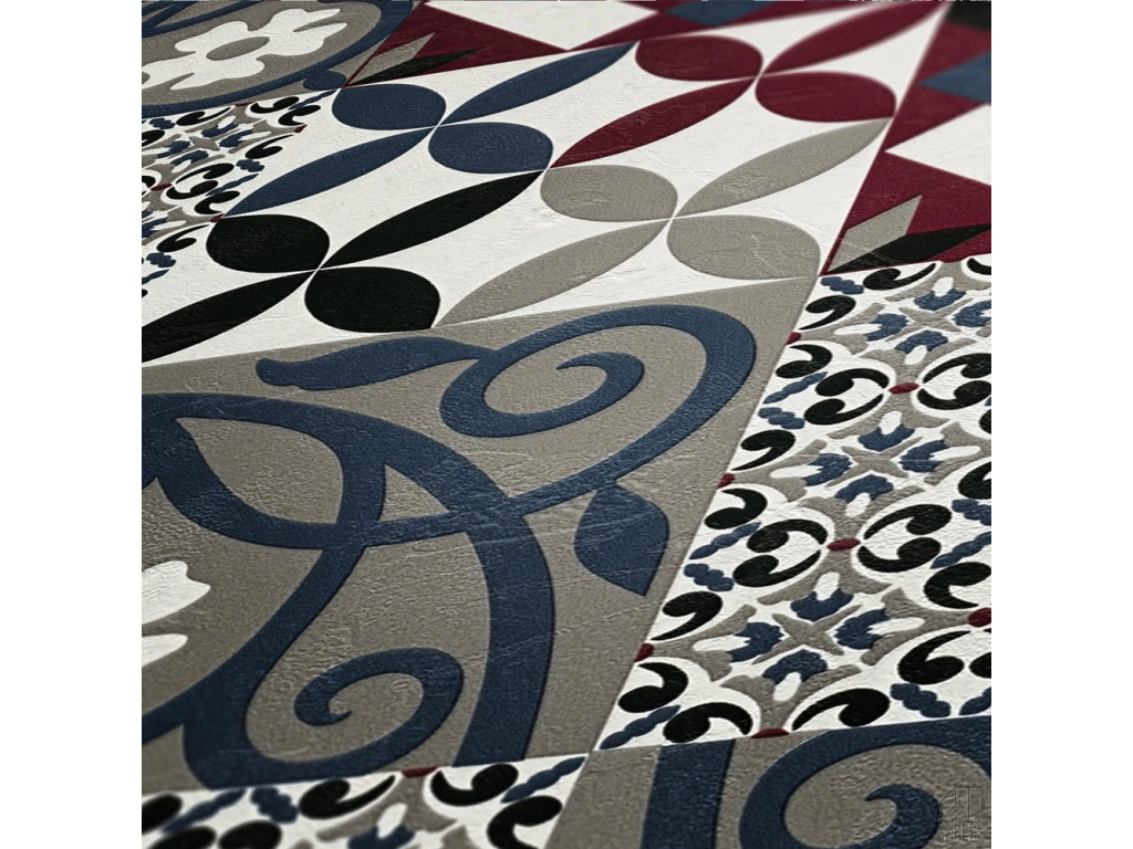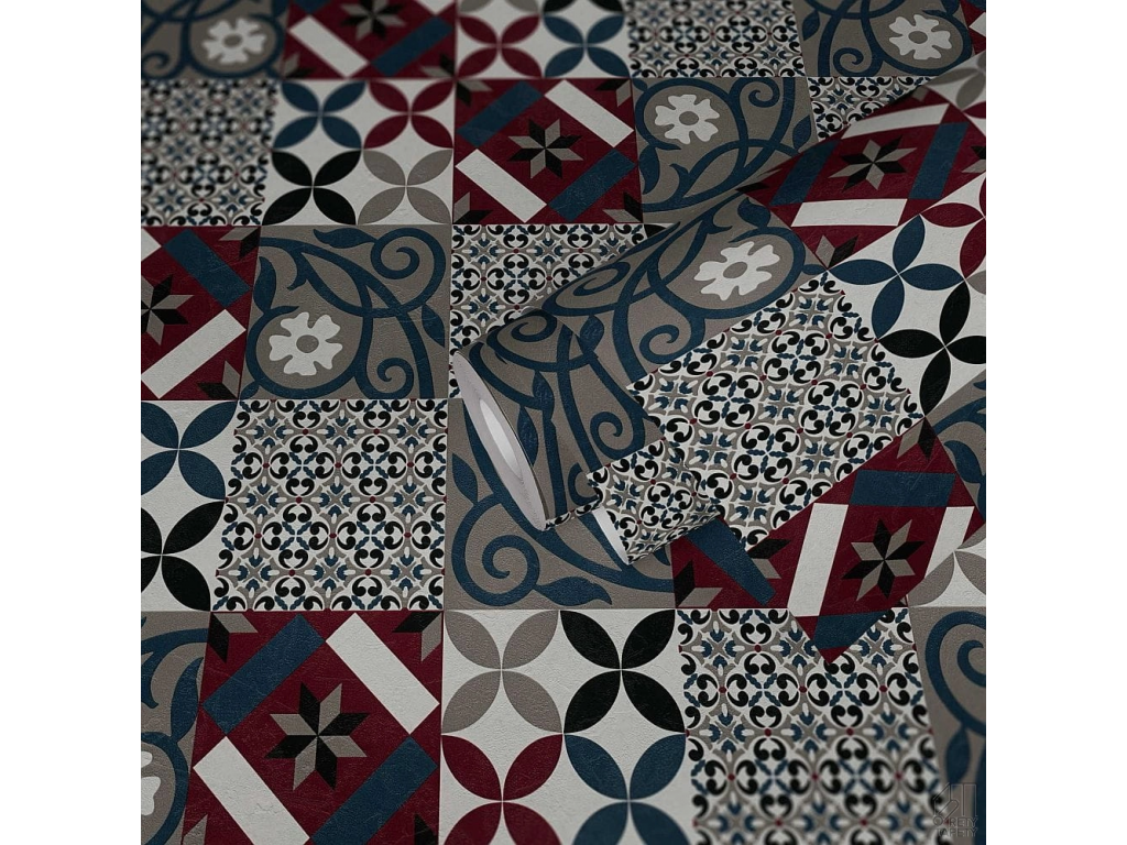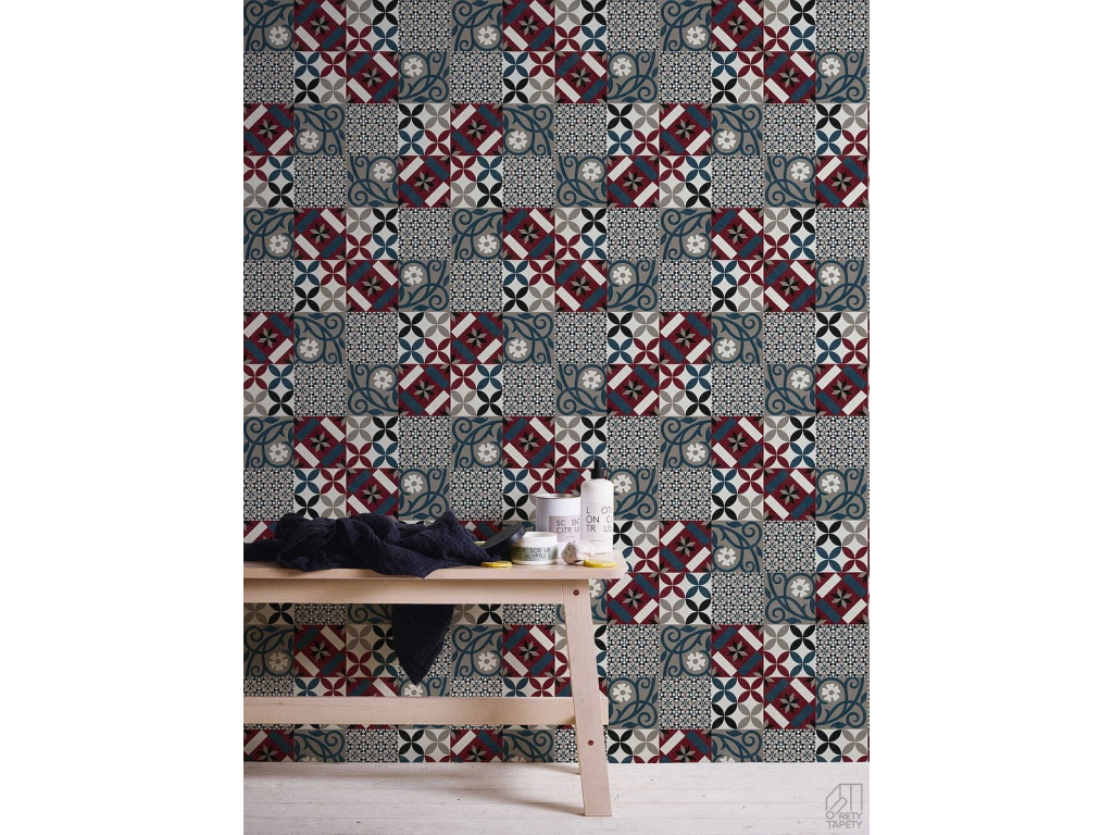 Tapeta ścienna A.S. Creation 37684-4 z kolekcji New Life to wyrazisty, dekoracyjny wzór inspirowany klasycznymi kaflami i mozaiką w stylu marokańskim. Połączenie odcieni bordo, granatu, szarości i bieli tworzy efekt patchworku, który przyciąga wzrok i nadaje wnętrzu niepowtarzalnego charakteru.