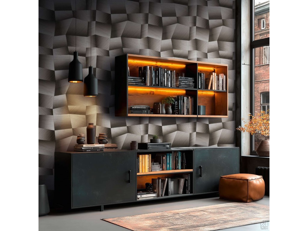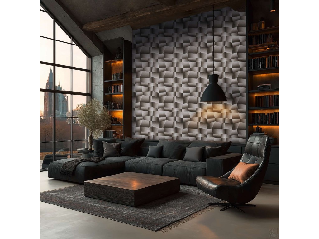 Nowoczesna tapeta 3D, która tworzy efekt eleganckiej ściany panelowej bez remontu. Geometryczny wzór inspirowany przestrzennymi bryłami nadaje wnętrzu głębi i wyrazistego charakteru, tworząc mocny, designerski akcent.